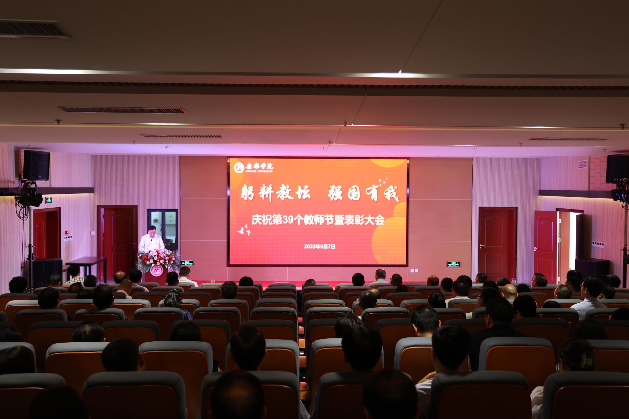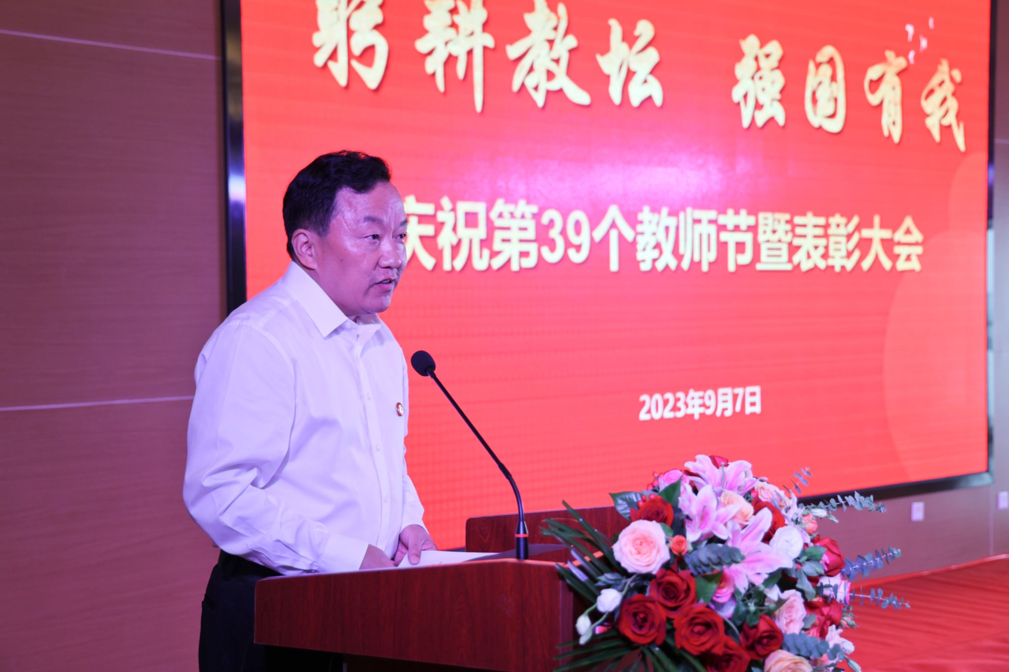 会上,丁巨涛代表学校向辛勤耕耘在教学、科研和管理服务一线的教职工,以及离退休职工致以节日问候,向新加入best365英国体育在线大家庭的71名教师表示诚挚的欢迎!向受到表彰的先进集体和个人表示热烈的祝贺!他从坚持立德树人根本任务、做践行高尚师德的典范,爱岗敬业、提升人才培养、科学研究和服务社会能力,持续强化服务保障、进一步彰显教师中心地位,对标目标任务抓落实、推动学校事业发展再上新台阶四个方面对如何做一名新时代高校好教师、如何尊重和服务教师提出了要求。