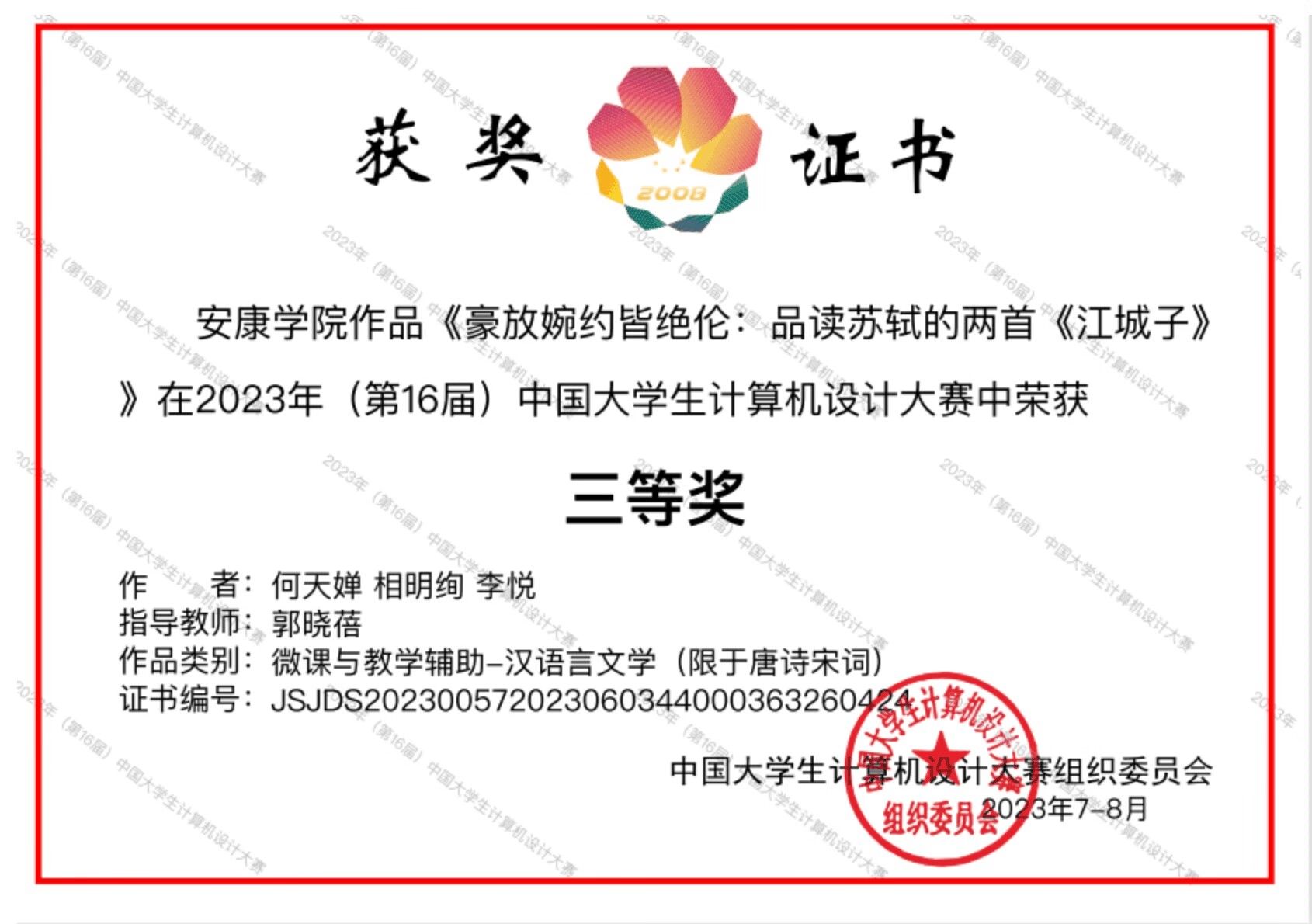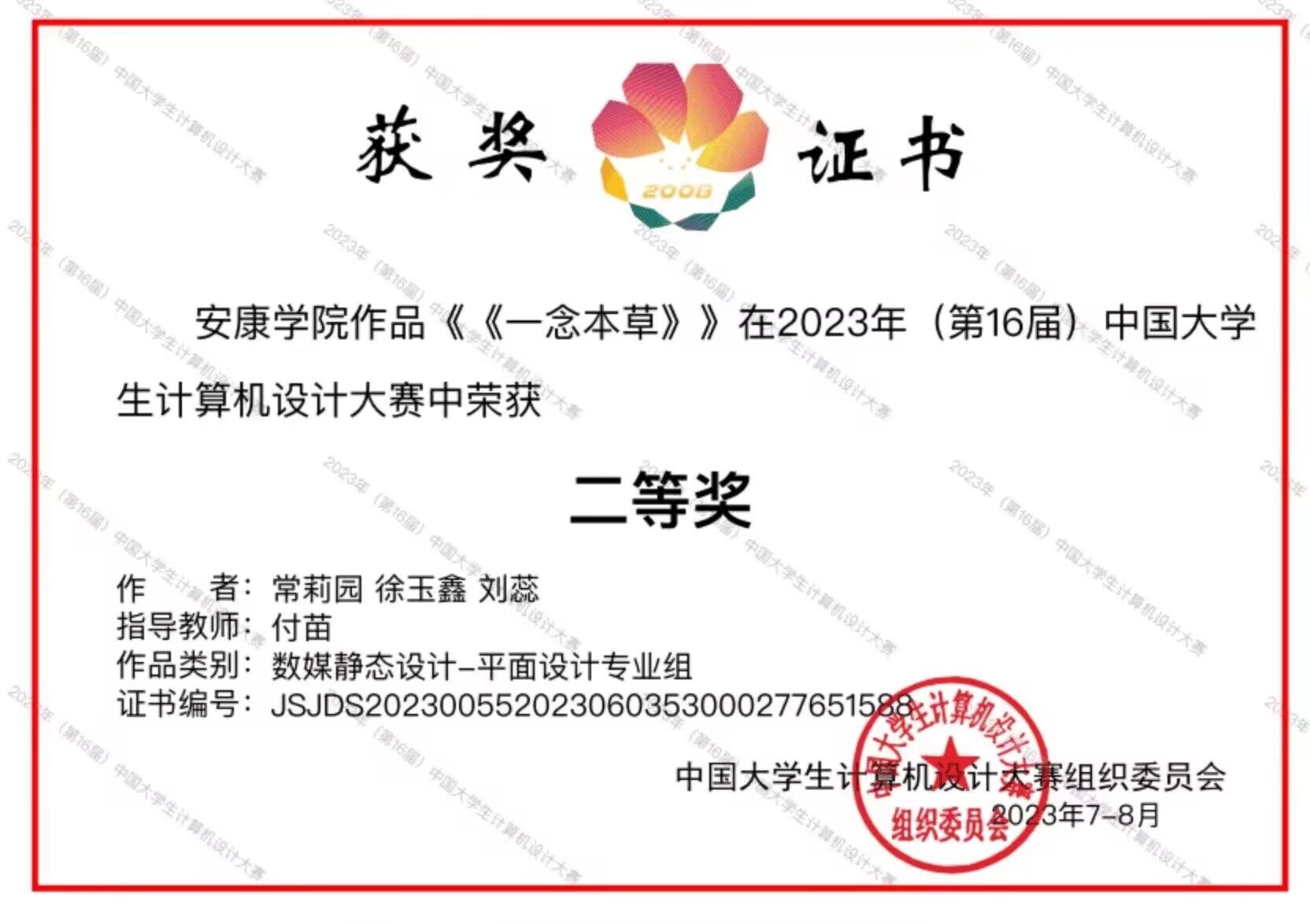 近日,由教育部高校与计算机相关教指委等联合主办的2023年(第16届)中国大学生计算机设计大赛结果揭晓,best365官网学子在此次比赛中表现优异,荣获国赛二等奖1项、三等奖2项,在此前的省赛中(西北赛区)荣获一等奖2项、二等奖11项、三等奖10项。