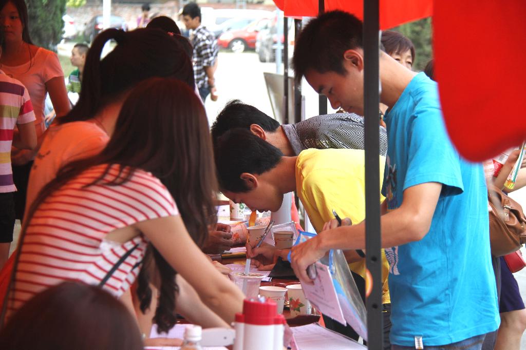 火车站、汽车站、各系迎新点、各宿舍楼下,随处都可以见到迎新志愿者的身影。接过新生手中重重的行囊,带领他们到各系迎新点注册,领取信息卡、军训服,为旅途劳累的家长打上一杯水,在车流川息不停的校门口当起交通员,一个手势,一个眼神,都展现了迎新志愿者的责任心和爱心。
