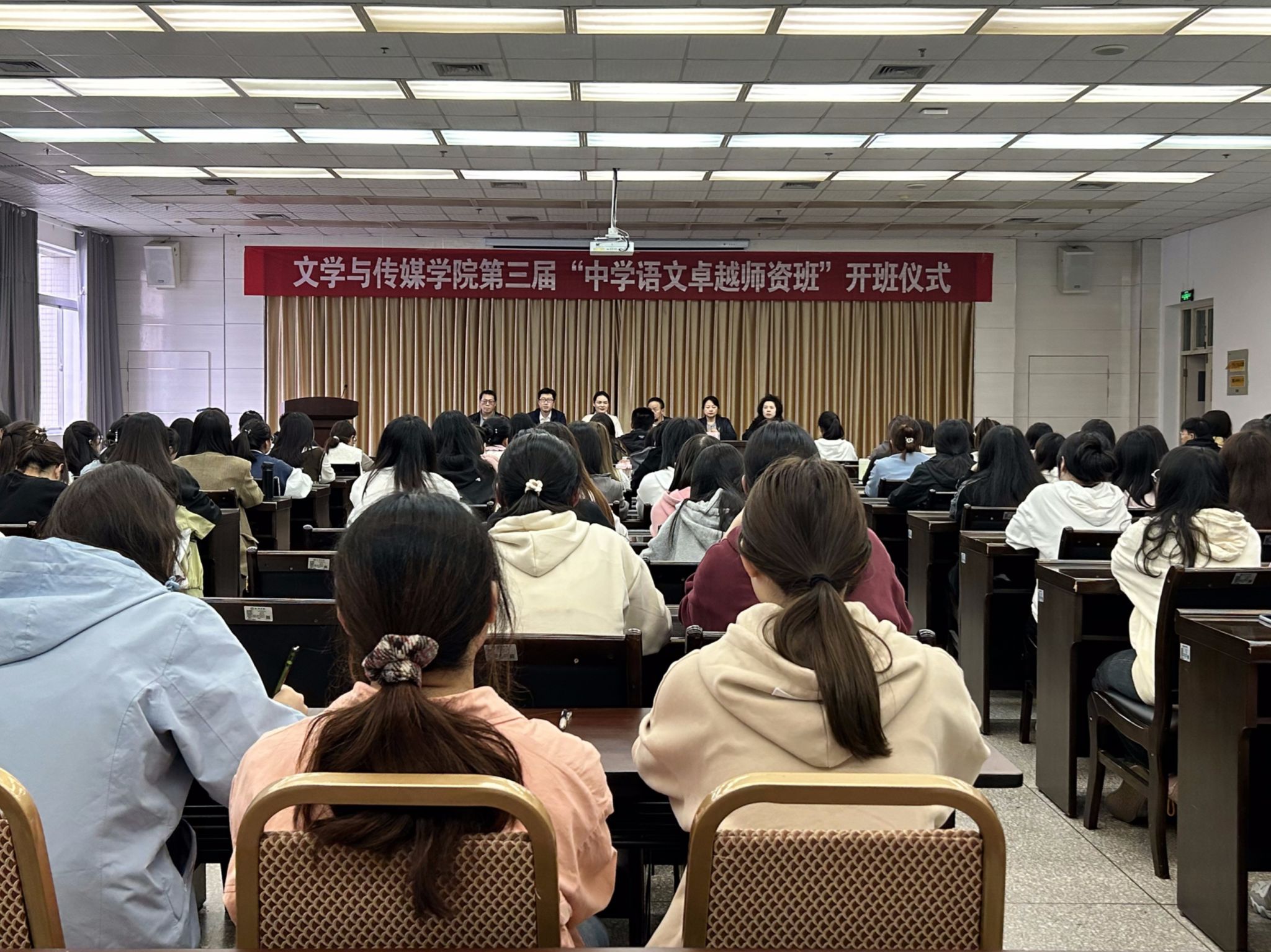 10月11日,best365官网文传学院第三届“中学语文卓越师资班”在江南校区图书馆六楼报告厅顺利开班。陕西省教学名师、基础教育领军人才邱俊,文传学院领导班子全体成员,第三届“中学语文卓越师资班”班主任和全体学生参加了开班仪式。