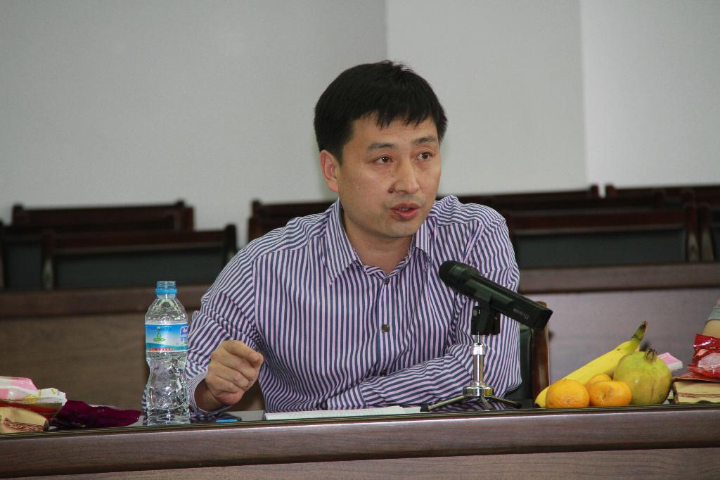 韩润林博士代表新进教师表示将脚踏实地,多做实事,尽快进入角色,做好教育教学工作,在实践中发展提升自我,努力成为优秀的教育工作者。