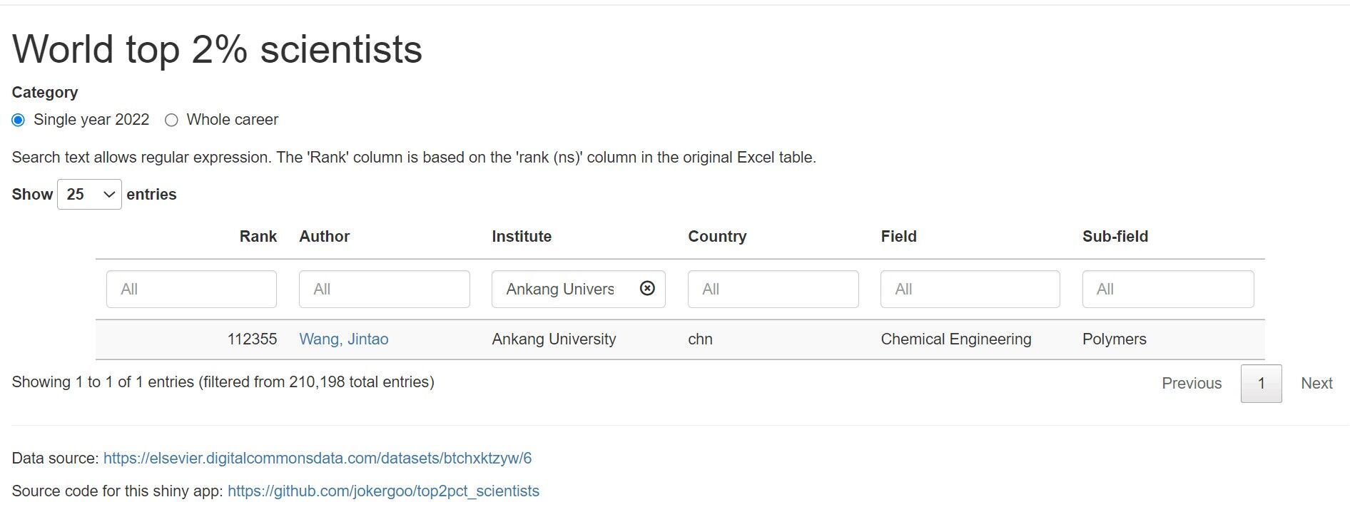 近日,美国斯坦福大学与Elsevier联合发布2023年度“全球前2%顶尖科学家榜单”(包括终身科学影响力排行榜和2022年度科学影响力排行榜)。best365官网科创驿站驻站博士王锦涛教授入选了“2022年度科学影响力排行榜”。