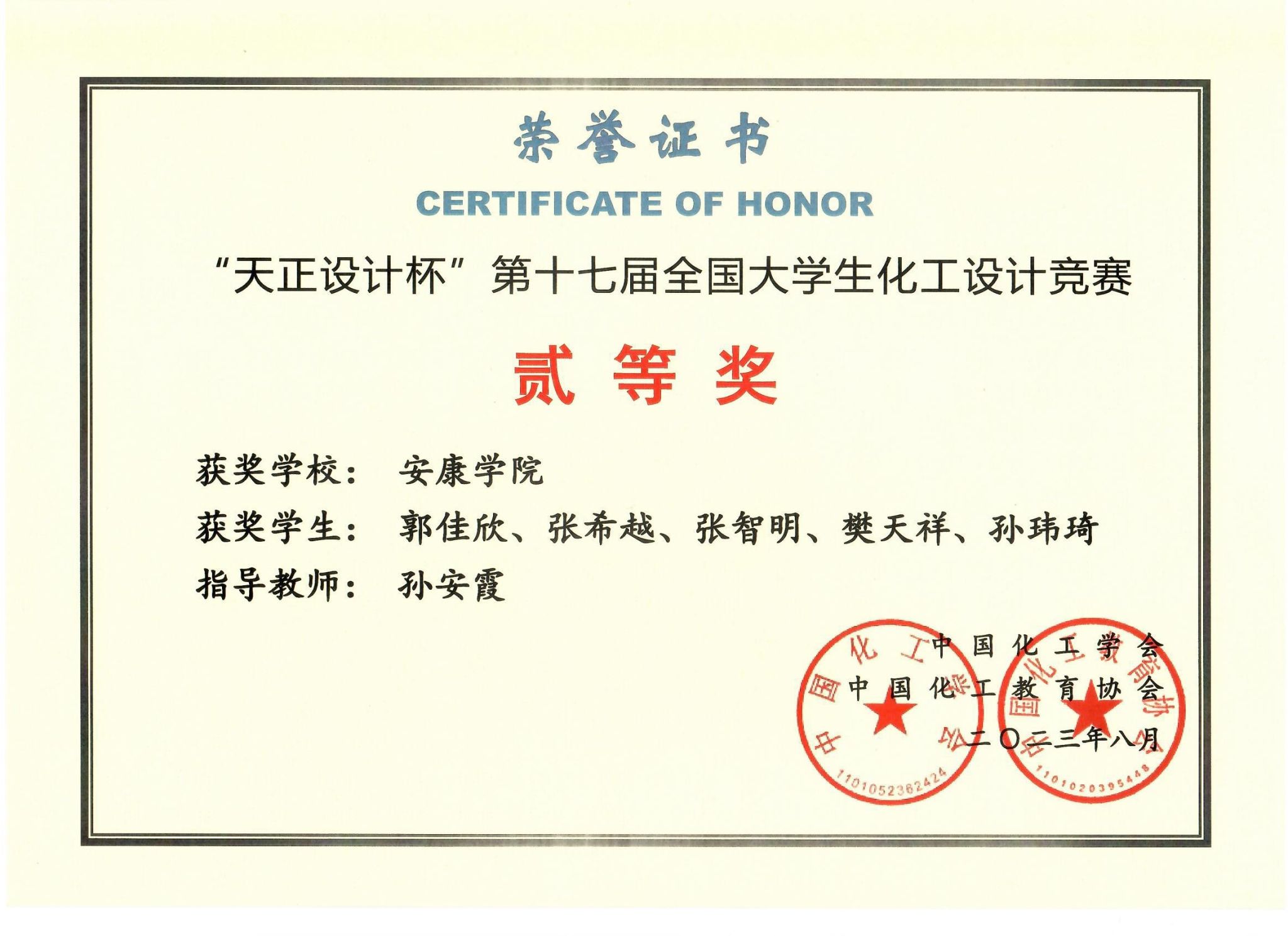 近日,“天正设计杯”第十七届全国大学生化工设计竞赛全国总决赛落下帷幕,best365官网化工学院“化学分子队”和“腈彩杰伦队”分别荣获全国二等奖和西北赛区三等奖。
