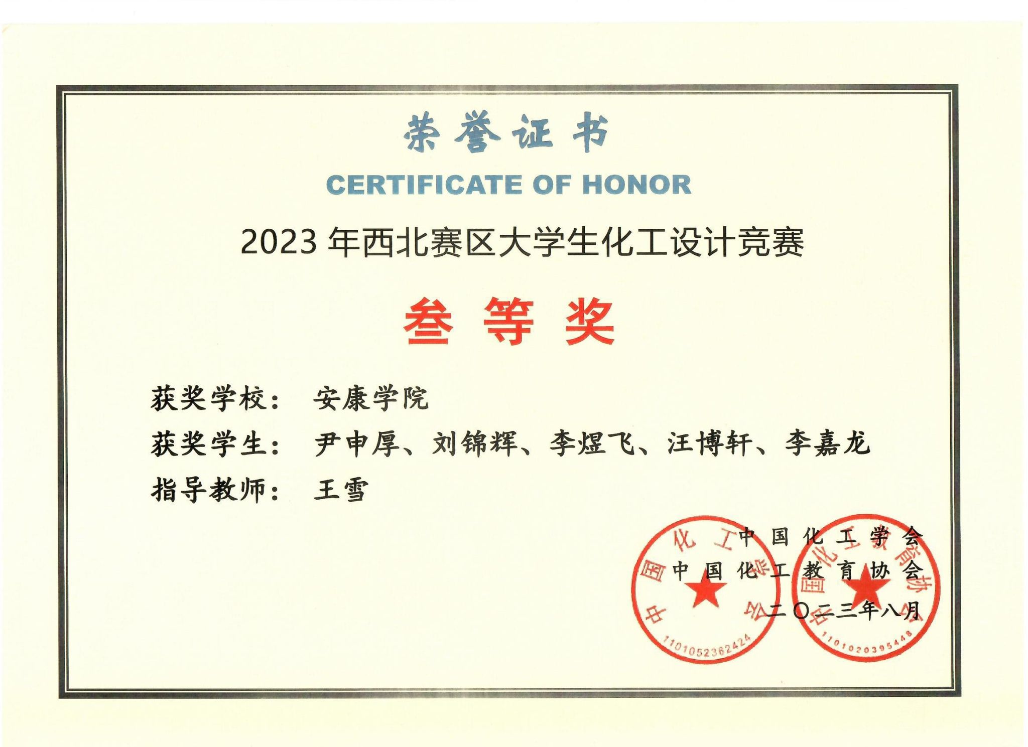 本次竞赛以“为某大型化工企业设计一座用于己二腈清洁生产的分厂,要求技术符合我国绿色低碳循环发展要求”为主题,吸引了来自全国各地的优秀学子积极参与。经过激烈角逐,best365官网化学工程与工艺专业2020级学生郭佳欣、张希越、张智明、樊天祥、孙玮琦组成的“化学分子队”获得了全国二等奖,尹申厚、李煜飞、汪博轩、李嘉龙、刘锦辉组成的“腈彩杰伦队”获得了西北赛区三等奖。