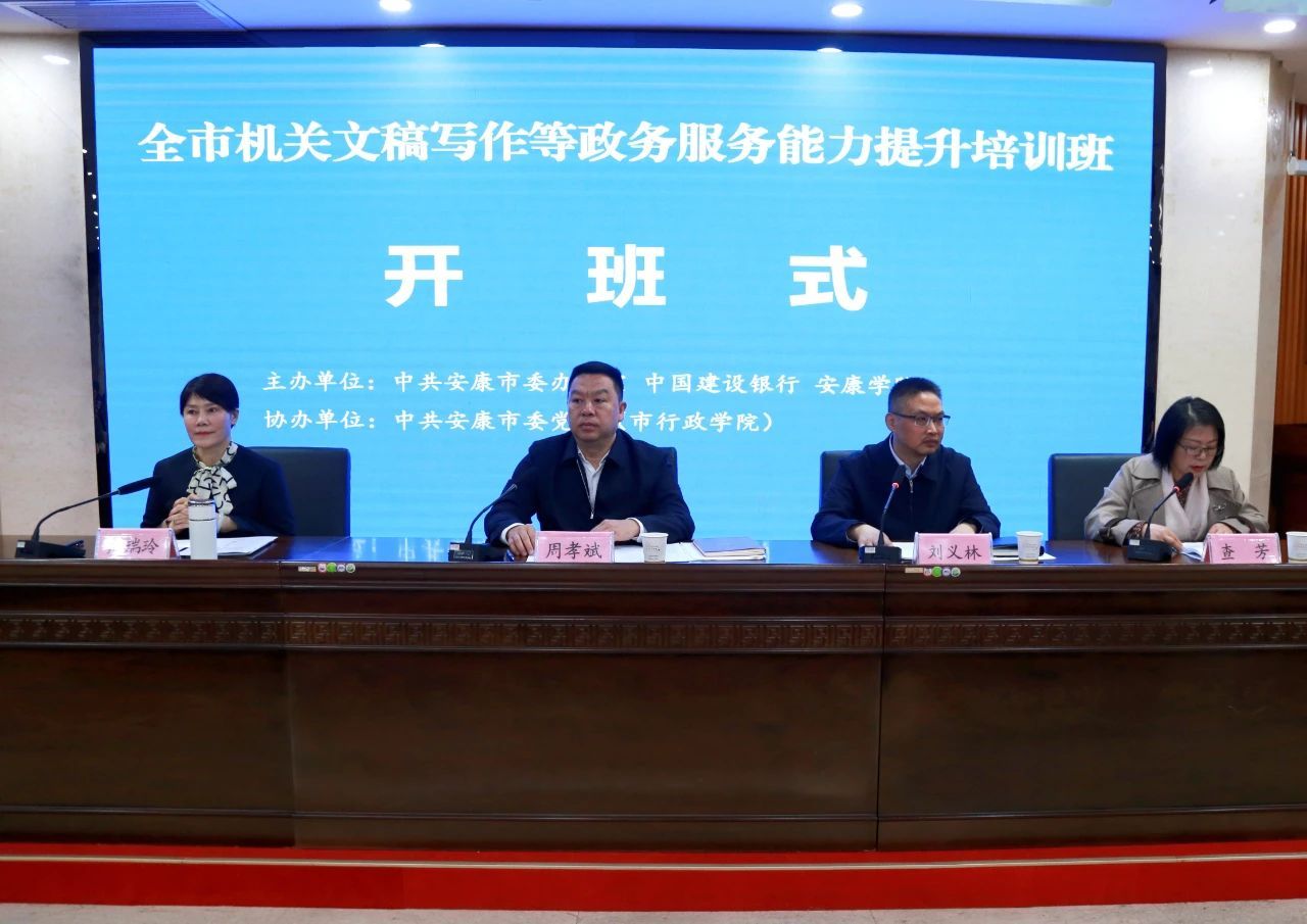 11月3日,由安康市委办、中国建设银行、best365英国体育在线主办,best365英国体育在线乡村振兴学院承办,安康市委党校协办的全市机关文稿写作等政务服务能力提升培训班开班。市委秘书长周孝斌,市委党校常务副校长周瑞玲,best365英国体育在线继续教育学院院长、乡村振兴学院副院长查芳,市委办公室领导班子成员,培训班(第一期)全体参训学员共计100余人参加会议。会议由市委副秘书长、办公室主任刘义林主持。