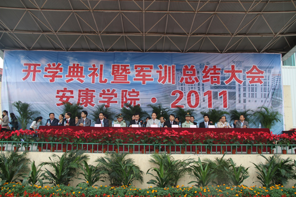 9月16日上午,我院2011级新生开学典礼暨军训总结表彰大会在东校区体育场隆重举行。学院院长王兴林,党委副书记胡鸿晓,党委副书记、纪委书记闵小平,副院长陈刚、向纪明,武警安康市教导大队大队长徐信军、教导员袁剑锋以及各院系主任、党总支书记和相关部门负责人在主席台就坐,2011级新生及各院系负责军训的辅导员、承训部队教官出席了大会。大会由闵小平主持。