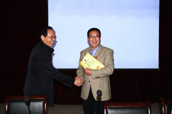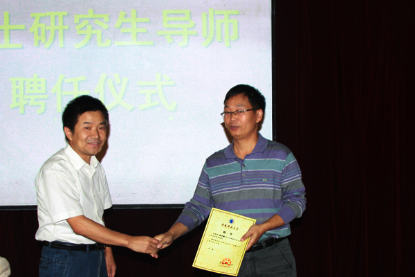仪式由科技处处长刘强主持,陕西科技大学研究生处处长任工昌教授宣读了《陕西科技大学关于公布2010年新增硕士研究生指导教师跨学科继续担任硕士研究生指导教师的通知》,任工昌教授、党宏社教授为我院向纪明教授、陈守满教授颁发了硕士研究生指导教师聘书。
