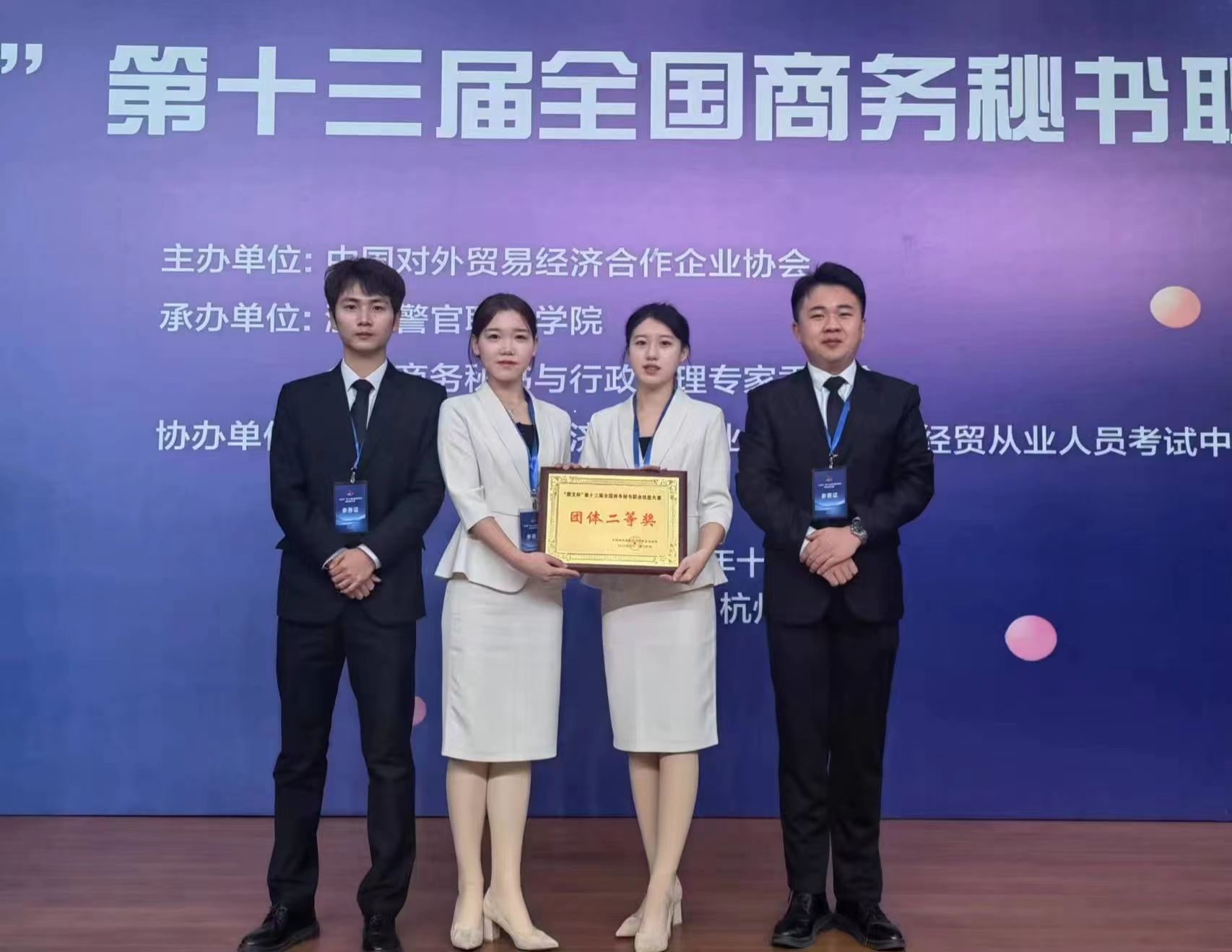 本届大赛由中国对外贸易经济合作企业协会主办,浙江警官职业学院和全国商务秘书与行政助理专家委员会承办。比赛内容设置丰富,分为个人单项秘书事务处理、综合事务处理、秘书工作情景展示及个人演讲四大环节,全面考查了参赛者的专业知识、实务操作能力及团队合作能力。best365官网文传学院精心组织、认真备赛,在指导教师的认真指导下,学生们在比赛环节中发挥出色,以扎实的专业知识、过硬的专业技能和默契的团队协作赢得了大赛评委会及参赛师生的广泛称赞。