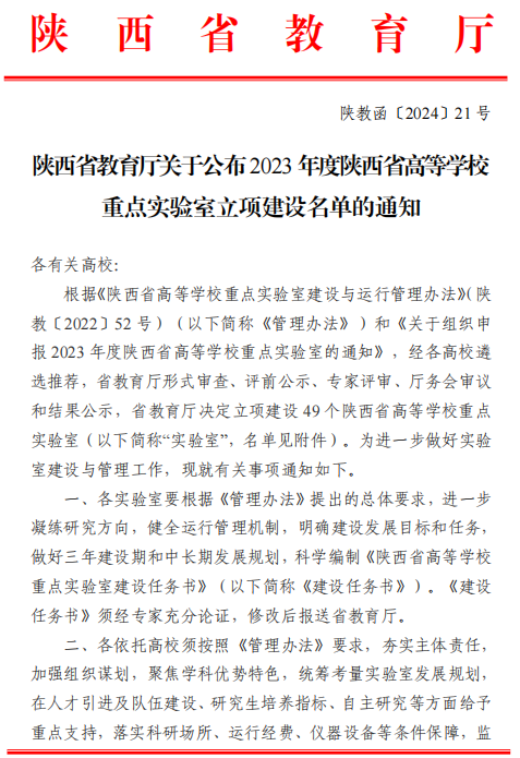 近日,陕西省教育厅发布了《陕西省教育厅关于公布2023年度陕西省高等学校重点实验室立项建设名单的通知》,best365官网科创驿站驻站科技人员、化工学院青年教师王锦涛博士牵头申报的“界面多孔材料陕西省高等学校重点实验室”获批立项建设。