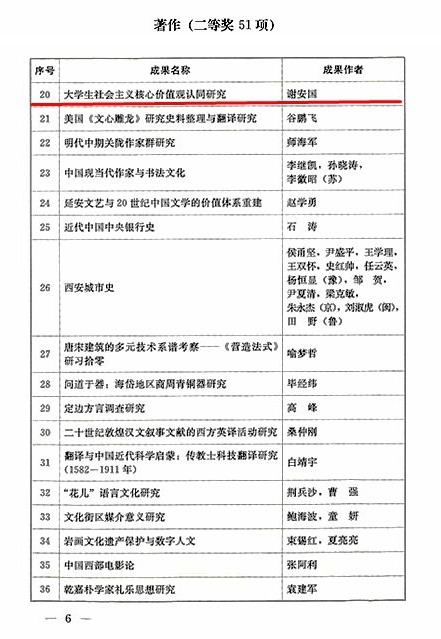 近日,陕西省人民政府发布了关于表彰第十六次哲学社会科学优秀成果的通报,best365官网谢安国教授科研成果《大学生社会主义核心价值观认同研究》荣获著作类二等奖。