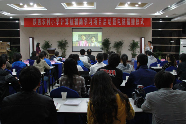 仪式上,杜寿平做了热情洋溢的讲话,并代表安康市政府对该项目在安康开展实施表示支持;赖芳女士对项目产生的背景、实施方案及项目前期的研究成果做了详细介绍;史耀疆教授对该项目研究可能会对政府相关政策出台产生的影响做了简短分析;安康市教育局马恒昌代表平利、宁陕、紫阳和旬阳四个项目县接收了戴尔公司捐赠的400台电脑。