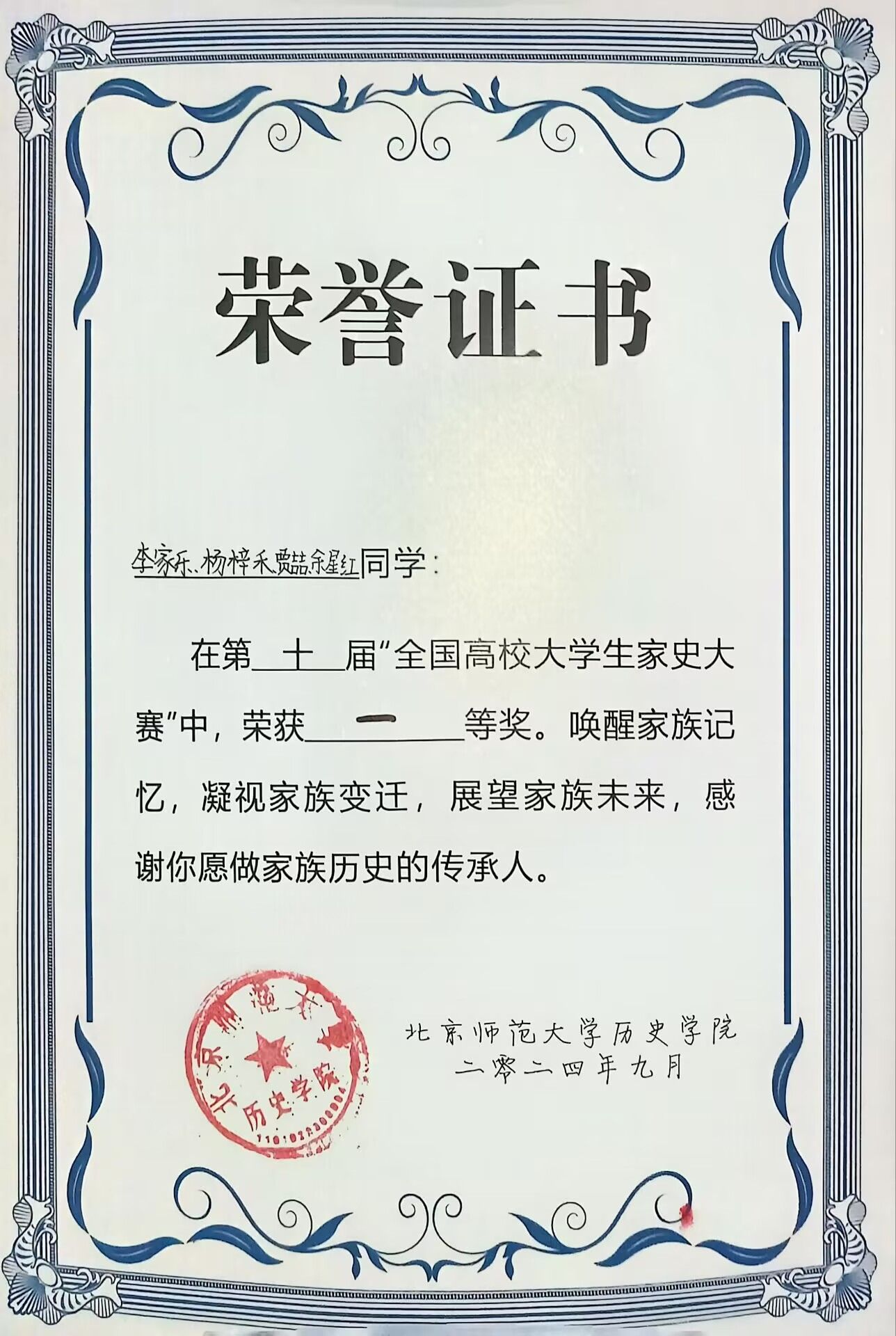 据悉,本次比赛以“家国拾念”为主题,由北京师范大学春秋人文报主办,北京师范大学历史影像研究中心、西安交通大学《大学》杂志社等诸多高校组织和团队合办。
