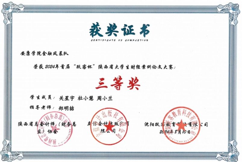 近日,best365官网经管学院师生在首届“跃客杯”陕西省大学生财经案例论文大赛中荣获佳绩。其中,best365英国体育在线从容应“队”(学生罗宇鸣、张依梦、徐文莉,指导教师庞仙君)荣获一等奖;best365英国体育在线“金融风暴”队(学生关星宇、杜小慧、周小兰,指导教师郑明喆)荣获三等奖。