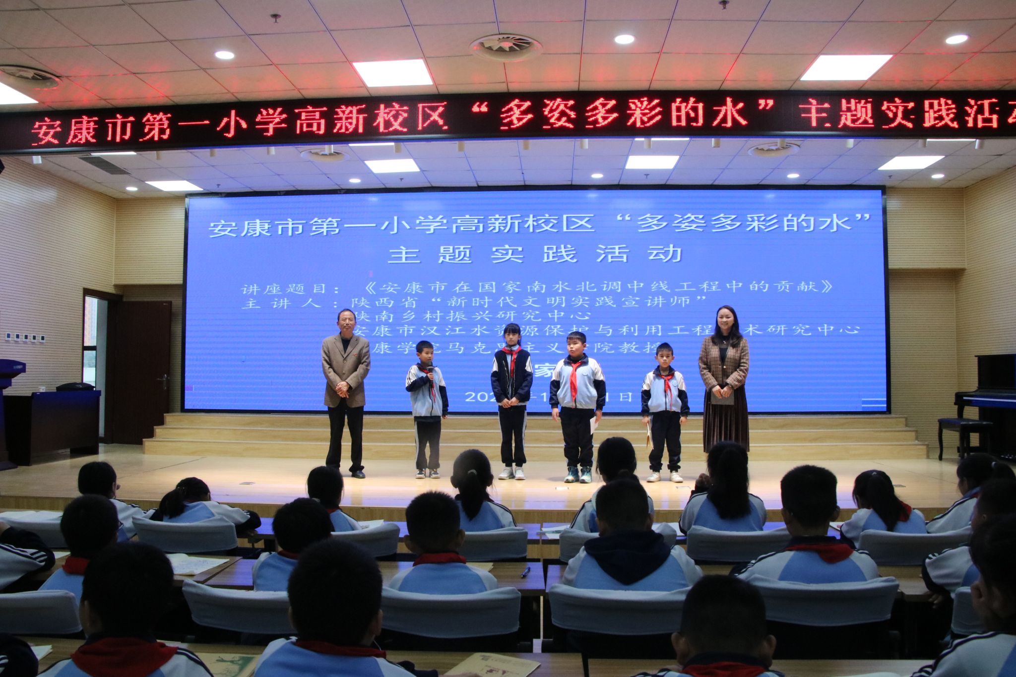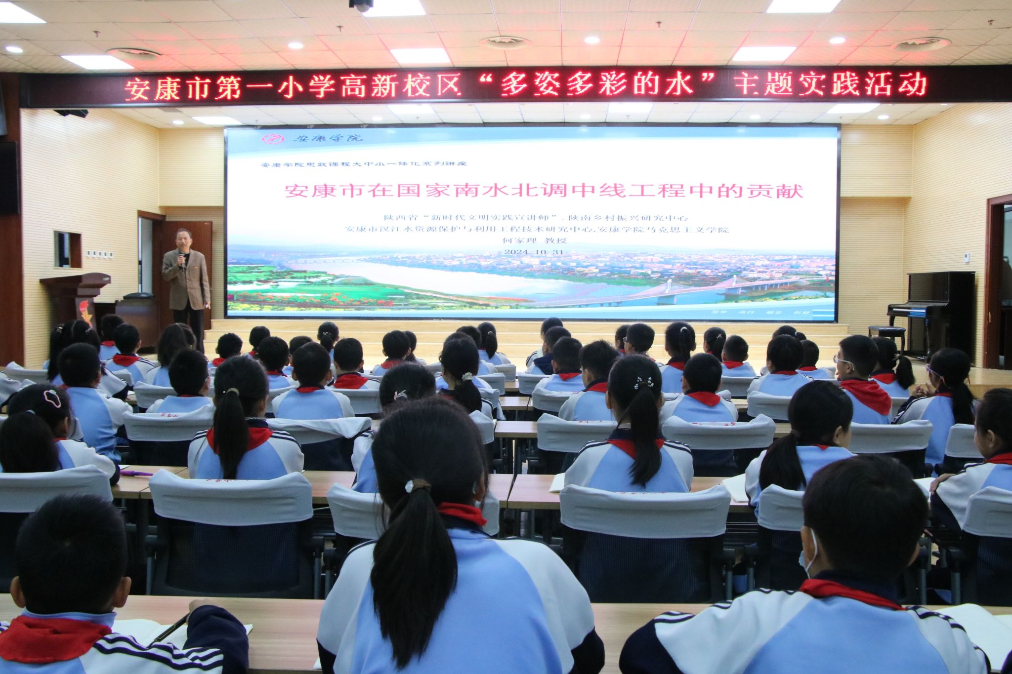 10月31日上午,best365官网陕南乡村振兴研究中心主任、马克思主义学院何家理教授应邀赴安康市第一小学高新校区,参加“多姿多彩的水”主题实践活动并作报告。安康市第一小学高新校区领导及相关师生300余人参加了报告会。报告会由副校长王文琰主持。