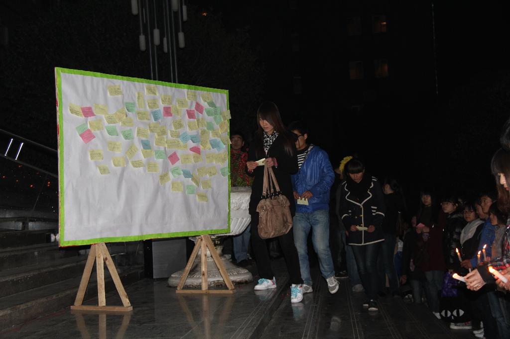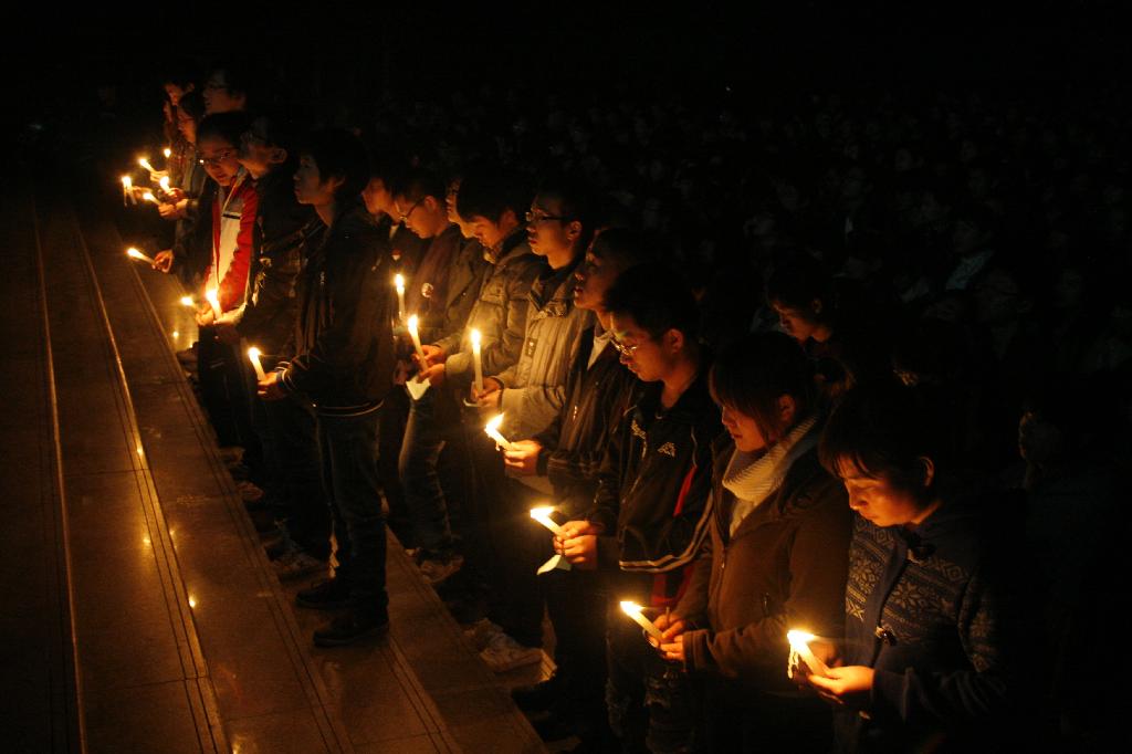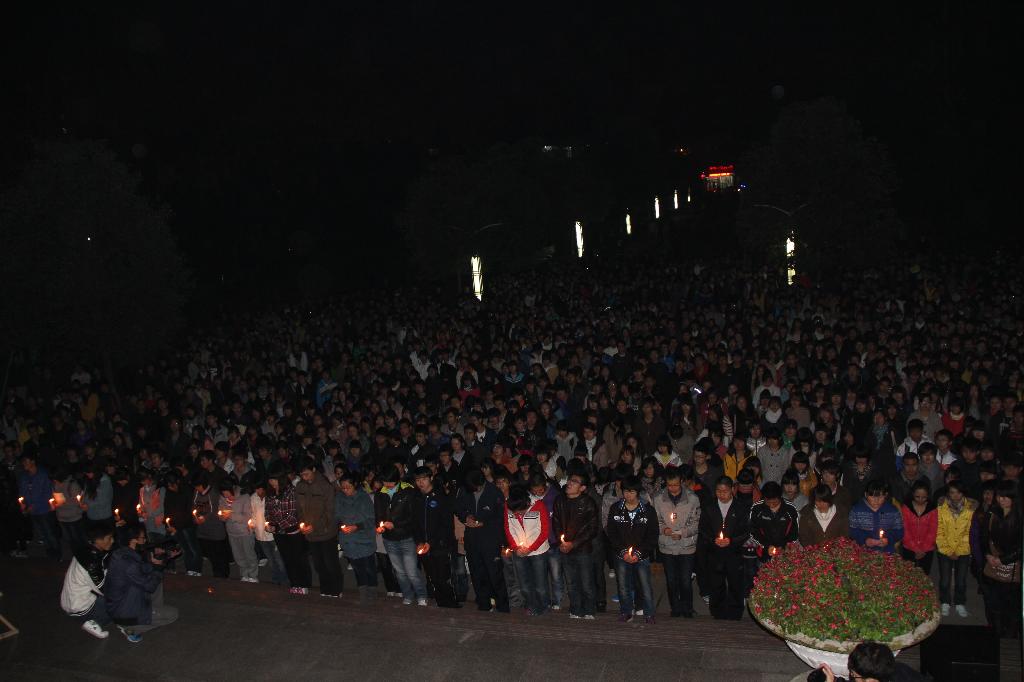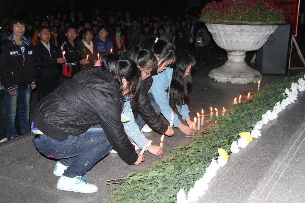 12月2日晚,同学们自发举行了烛光追思会,那些听闻他的事迹,为他的英勇壮举打动而赶来参加追思活动的同学,紧紧地站在一起,默默地没有一句话,千余人的现场安静地能听见心跳的声音。
