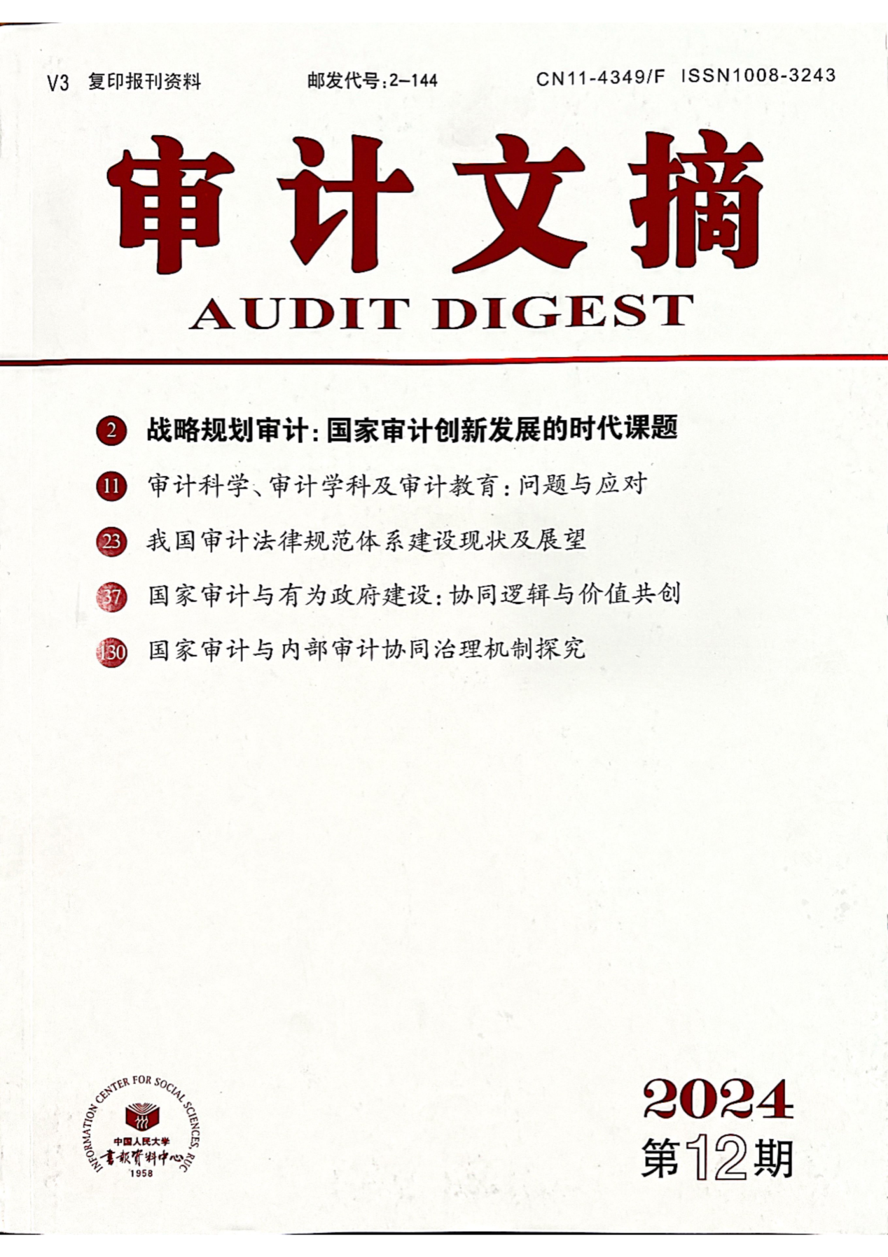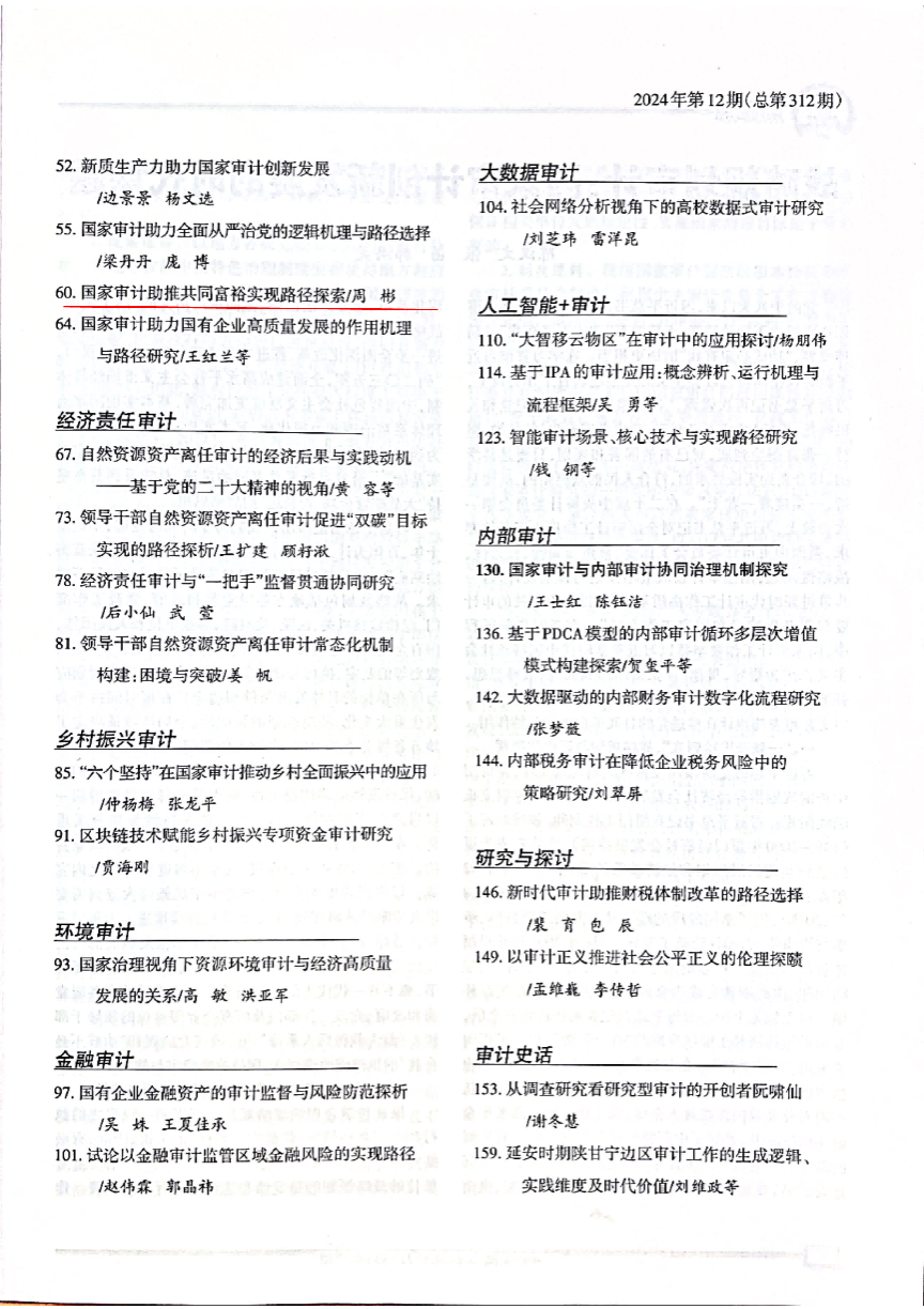 近日,从中国人民大学复印报刊资料数据库获悉,best365官网学报2024年第4期刊发的论文《国家审计助推共同富裕实现路径探索》被人大复印报刊资料《审计文摘》2024年第12期全文转载。