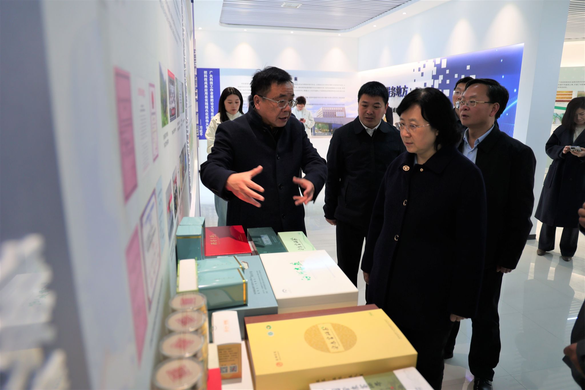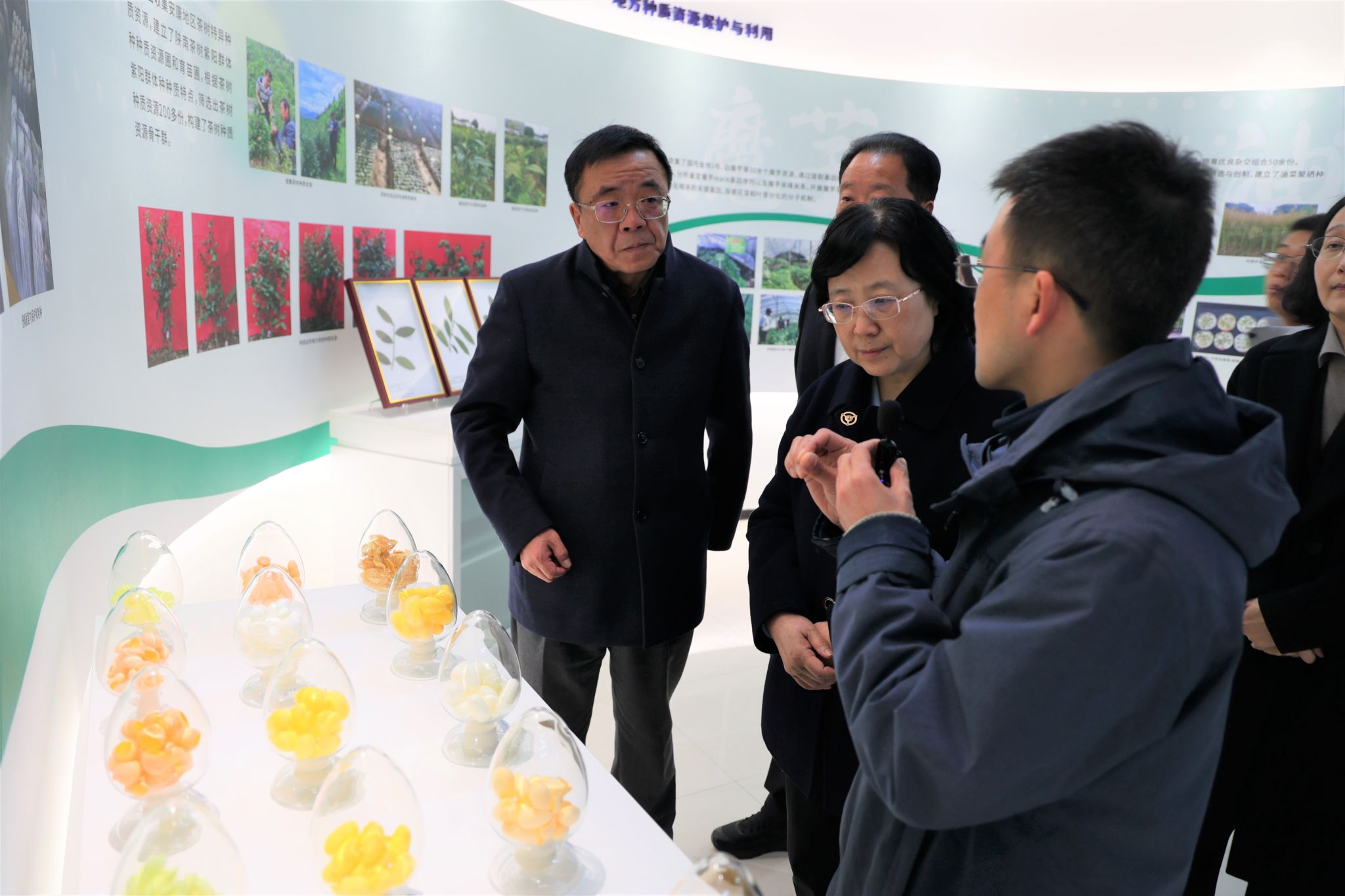 周玉峰一行先后参观了校史馆、科技服务地方成果展览馆。在校史馆,通过艰苦创业、扎根秦巴等专题展区,周玉峰详细询问学校创办历程中党外专家群体的突出贡献,对老一辈专家学者“舍家为民、科技报国”的家国情怀表示由衷敬意。在科技服务地方成果展览馆,她重点考察了智慧农业、秦巴中草药资源开发、富硒产品开发、新型复合材料研发等产学研合作项目,对学校依托党外人才优势推动“三服务”办学宗旨的实践成果给予充分肯定。