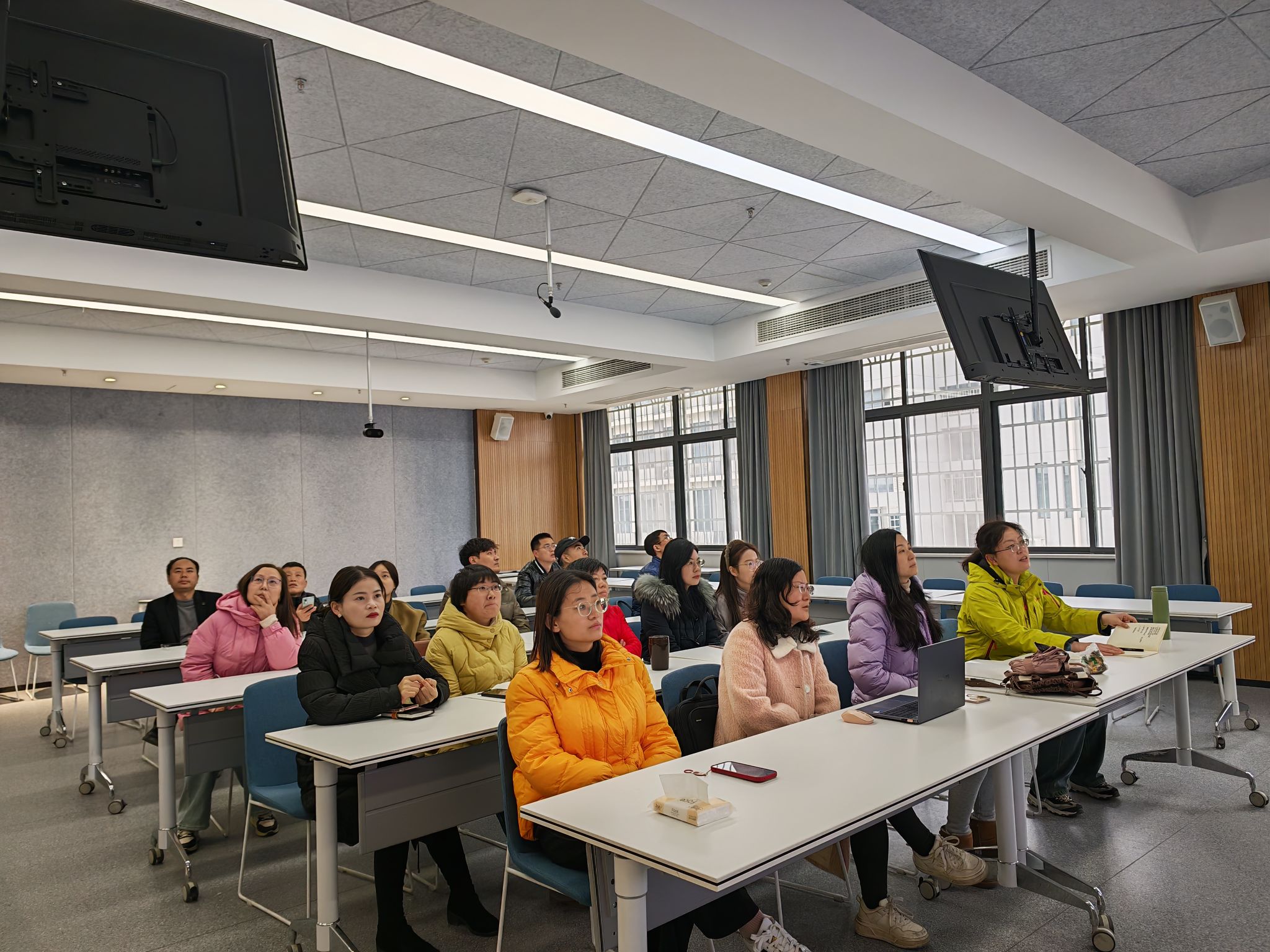教师培训赋能,智能工具促转型。为促进教师人工智能应用能力提升,保障课程建设与教学质量,教务处、教师发展中心组织多期人工智能专题培训,聚焦生成式AI技术实践、智慧课程体系构建及DeepSeek工具教学场景化应用等核心主题,通过“理论精讲+课堂实操”的深度融合模式,系统提升教师智能技术应用水平,助力教学设计精准优化与教学质量全面提升。