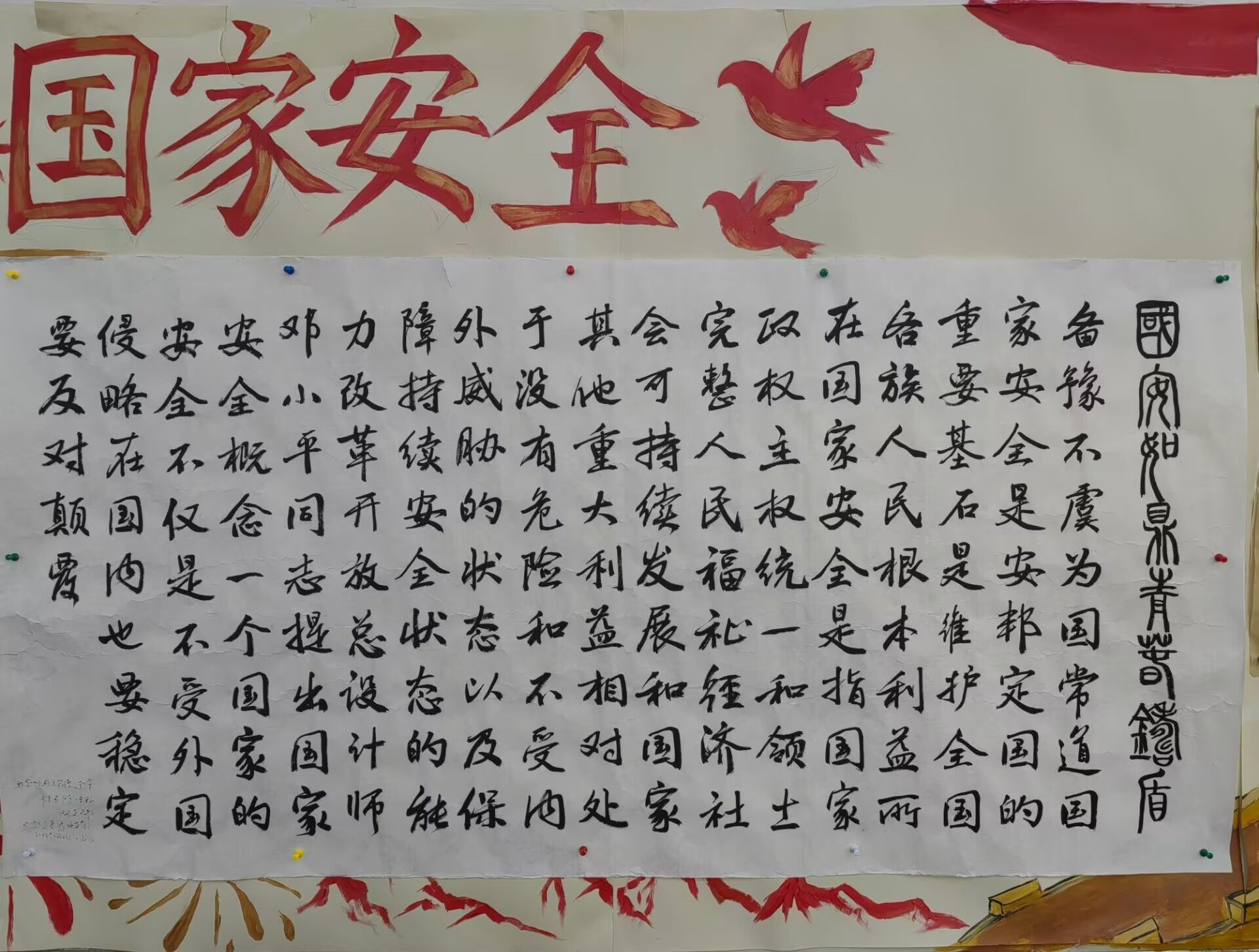 在全民国家安全教育日迎来十周年之际,为进一步提升师生的国家安全意识,深化校园国家安全宣传教育,夯实校园国家安全根基,4月15日,学校精心组织开展了一系列丰富多彩、形式多样的宣传教育活动,推动国家安全教育走深走实。