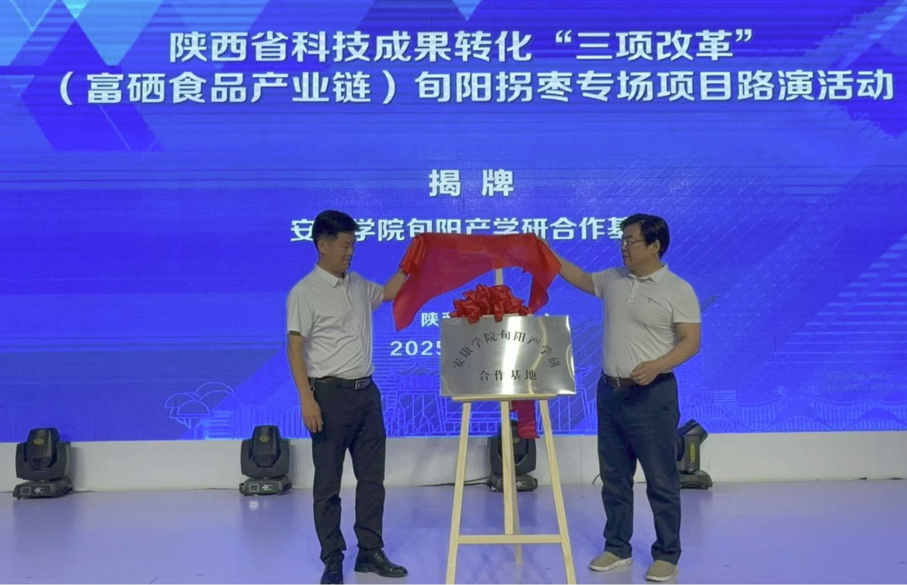在与会嘉宾的共同见证下,王健代表学校与旬阳市政府副市长沈纪兵共同为“best365英国体育在线 旬阳产学研合作基地”揭牌,标志着best365官网与旬阳市的校地合作迈入了全新阶段。该基地将围绕拐枣功能食品开发展开深度科研攻关,充分挖掘拐枣产业巨大潜力,通过提升产品附加值,推动科技成果转化落地,为当地产业升级持续注入强劲动力。