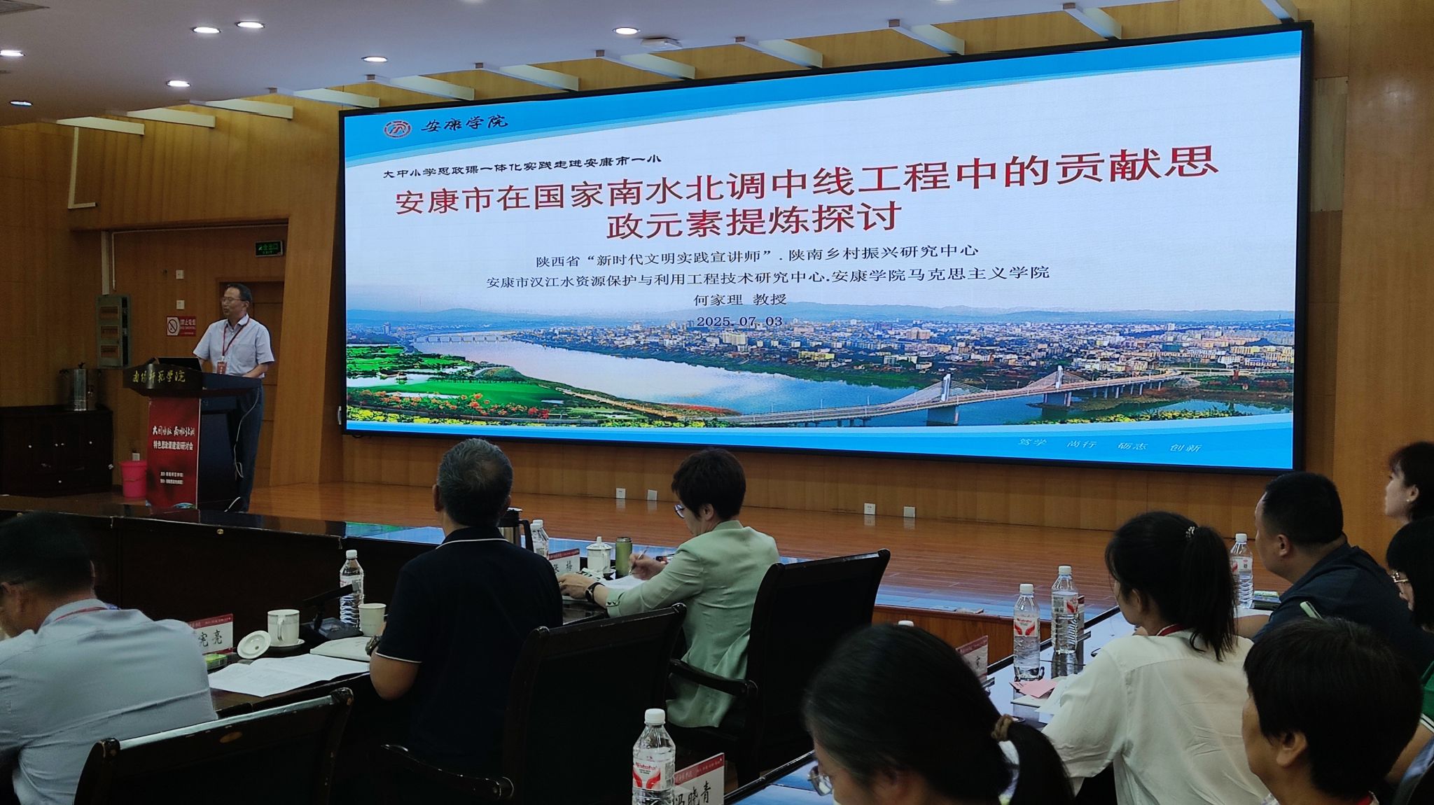 会议主旨报告阶段,best365官网马克思主义学院何家理教授作了题为《安康市在国家南水北调中线工程中的贡献思政元素提炼探讨》的发言,从大中小思政课一体化建设要求、安康市在国家南水北调中线工程中的贡献及思政元素提炼等三个方面,介绍了best365官网的做法和经验,赢得了与会专家的充分肯定。
