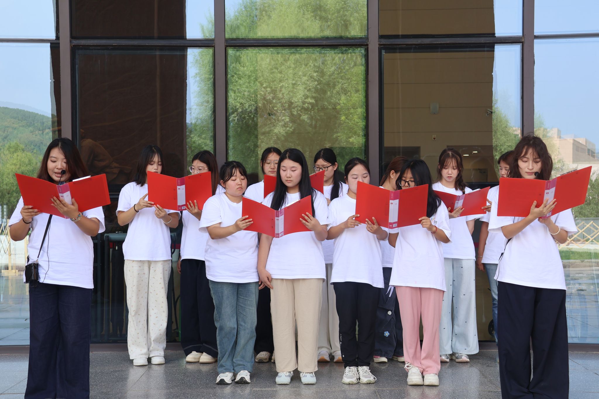 纪念中国人民抗日战争暨世界反法西斯战争胜利80周年朗诵会上,团队朗诵的《八十年・血火丰碑》,将抗战青年的救国情怀与当代青年的强国志向相呼应,在情感共鸣中强化历史使命感;红歌欢唱环节中,团队合唱《不忘初心》,以悠扬旋律重温党的奋斗历程,歌词中“不忘初心,继续前进”的誓言与延安时期共产党人的使命担当形成跨越时空的呼应,让师生在歌声中回望来路、坚定方向。这种“从观察到思考、从感悟到行动”的升华,让红色基因真正融入青年血脉。