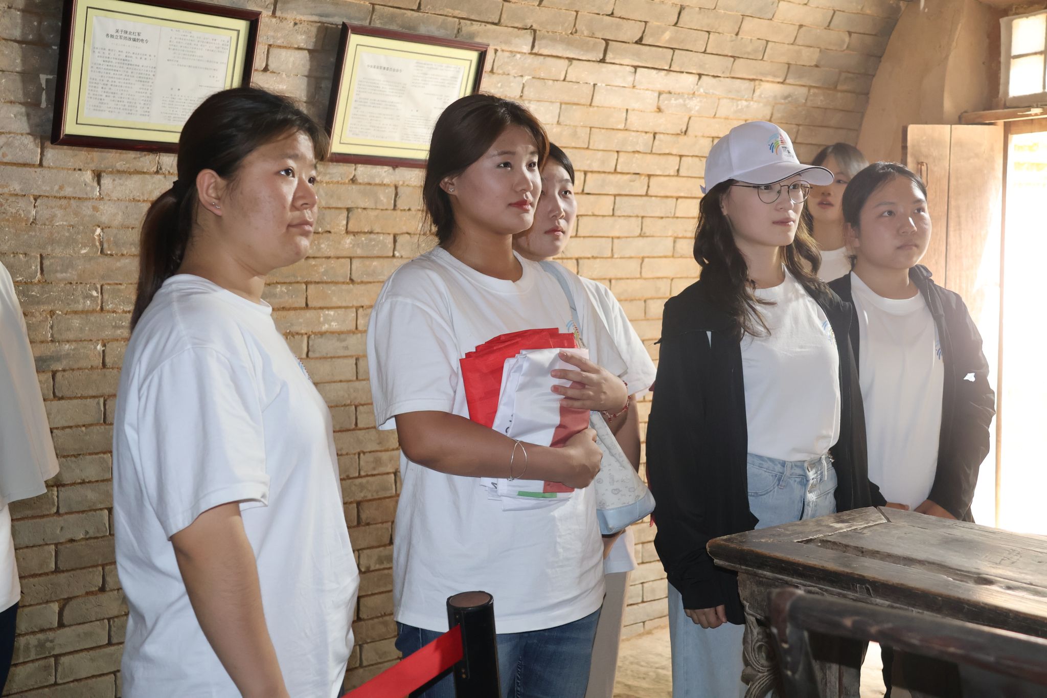 在薛家寨革命旧址,团队成员沿着陕甘边游击队的战斗足迹徒步攀登,亲身体验“昔日战场”的险峻;宝塔山上,师生们登顶俯瞰延安城,在“革命圣地的象征”下感悟“宝塔指方向”的精神寓意。这种“用脚步丈量历史”的方式,让青年在沉浸式体验中理解革命道路的艰辛与信仰的力量。