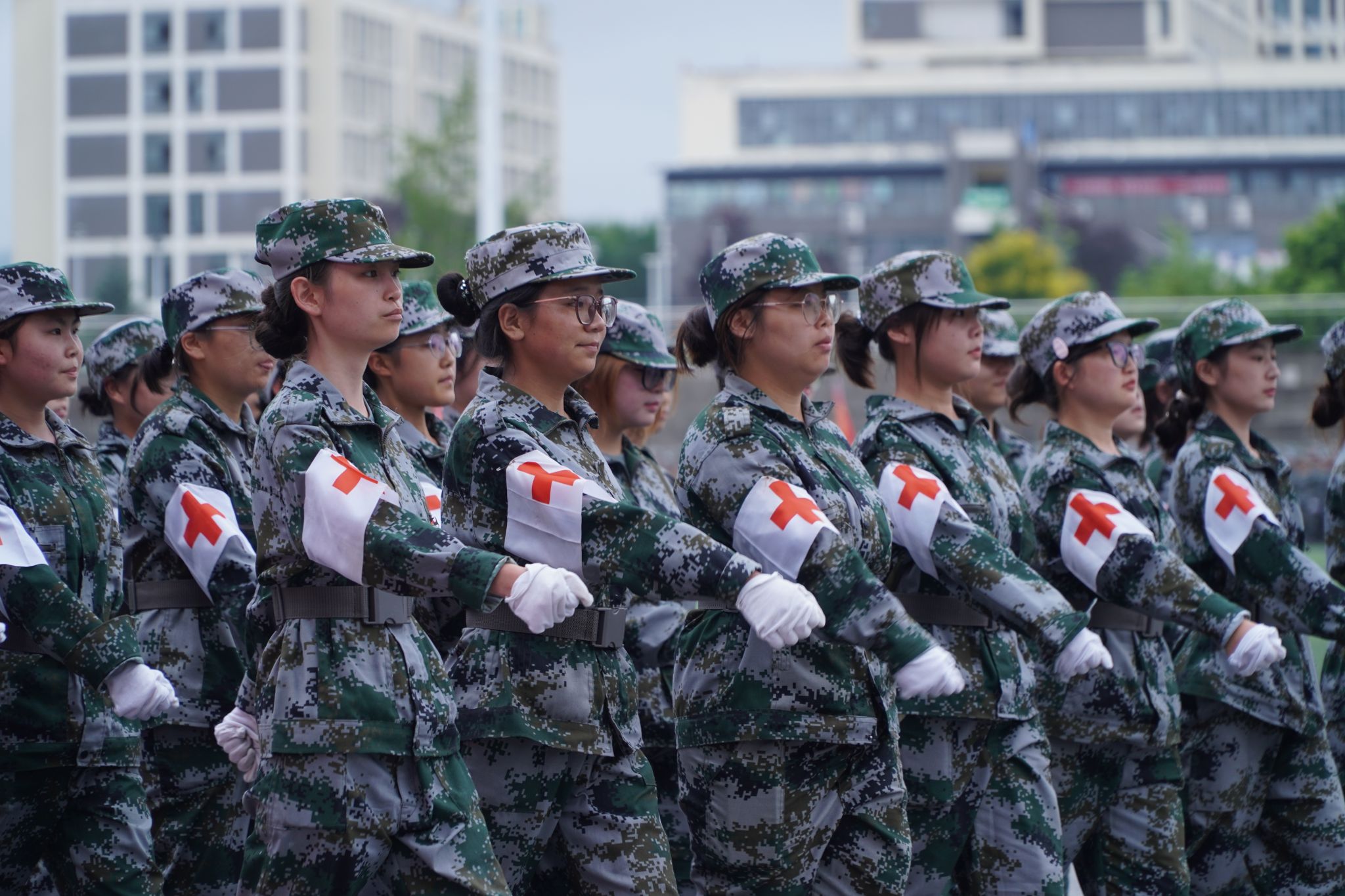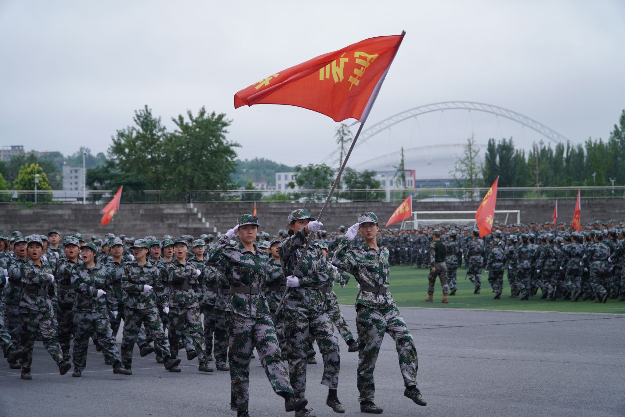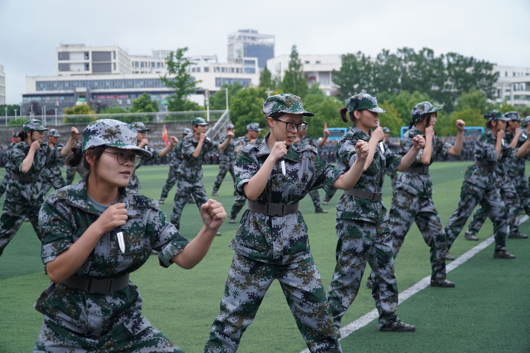 在庄严的国歌声中,大会正式拉开帷幕。25个军训连队以铿锵有力的步伐、昂扬向上的精神风貌依次走过主席台,接受检阅。汇演中,新生们先后带来棍术、匕首操、刺杀等精彩科目,教官们则表演了刚劲有力的格斗拳。他们动作规范、步伐整齐、口号嘹亮、气势如虹,既展现出扎实的训练成果,又彰显了新时代青年的蓬勃朝气与军人般的飒爽英姿,赢得现场阵阵热烈掌声。