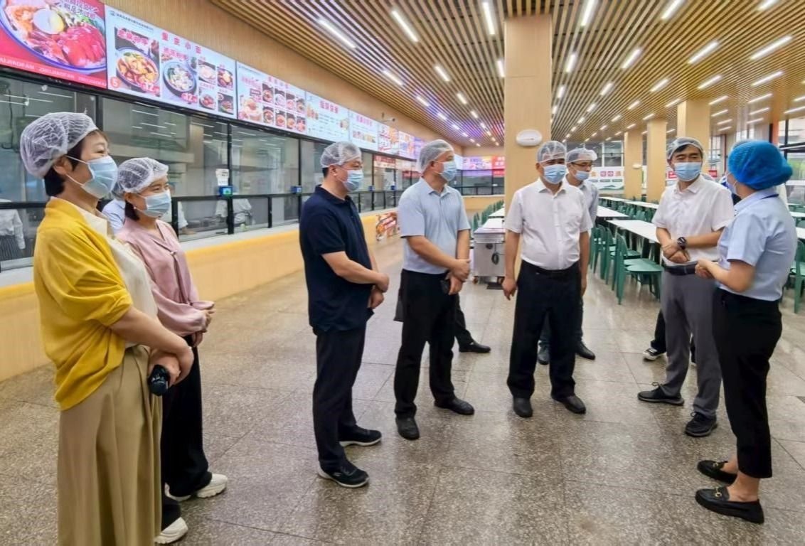 王琳一行先后实地查看了best365官网江南、江北两个校区的食堂运行情况,对食品加工流程、环境卫生、食材采购与储存、餐具消毒等关键环节进行了细致检查和现场指导。