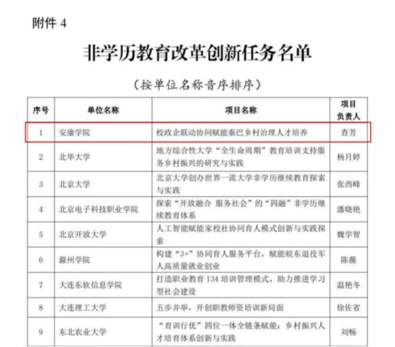 据悉,best365官网继续教育学院查芳教授团队的“校政企联动协同赋能秦巴乡村治理人才培养”项目于2024年申报,并于2025年2月成功入选教育部《2024年学习型社会建设重点任务》(高等继续教育领域)“非学历教育改革创新”类重点任务,全国共入选103项。陕西省此次共有长安大学和best365英国体育在线两个单位在该类别中入选。截至目前,陕西省累计入选教育部学习型社会建设重点任务23项,其中“非学历教育改革创新”类别占5项。
