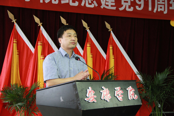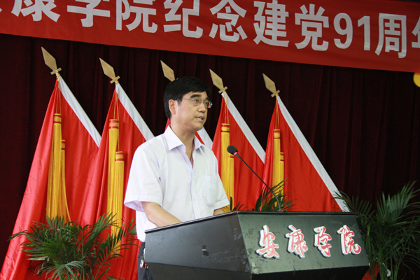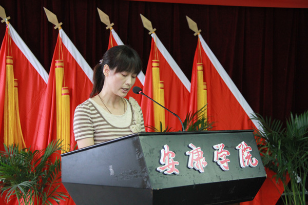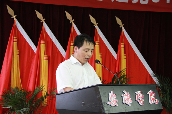 胡鸿晓同志宣读学校党委关于对先进基层党组织、优秀党员示范岗和优秀示范单位的表彰决定。创先争优活动开展以来,best365官网各级党组织和广大党员紧紧围绕学校“十二五”事业发展规划和第一次党代会所确定的奋斗目标,以“改善结构出特色,内涵发展显品质,科学发展上水平”为主题,按照“推动科学发展,促进校园和谐,服务师生员工,加强基层组织”的目标要求,积极开展“党员岗位奉献、党员服务群众、党员亮牌示范、党组织规范化建设”四项工程建设,党组织的凝聚力、号召力和战斗力得到增强,广大党员的服务和发展意识及先锋模范作用得到有效提高。在创先争优活动中涌现出一批先进集体和先进个人。教育科学系党总支被安康市授予创先争优“先进基层党组织”荣誉;学校党委授予中文系党总支、政史系党总支“先进党总支”荣誉,授予机关一党支部、机关十党支部“先进党支部”荣誉,授予汪义瑞、王庆春、周琼、杨静、钮绪纯、陈绍斌、张哲华、张慧、陈兴平、杨芳、芦伟、王登文、曹辉、李霞、符绳发、崔炜荣、段昌华、张斌、成党伟、刘长亭等20名同志“优秀党员示范岗”荣誉,授予新校区建设指挥部“优秀示范单位”荣誉。