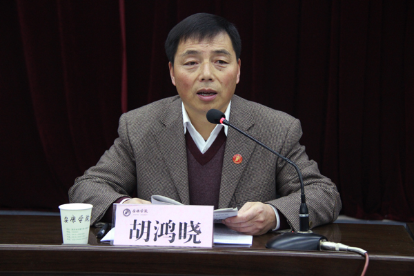 胡鸿晓对学校下一阶段的学习贯彻活动进行了总体部署。胡鸿晓要求党员干部要深刻认识学习宣传贯彻落实十八大精神的重大意义,带头学习、深入学习,进一步坚定理想信念,坚定走中国特色社会主义道路的决心和信心。要深入思考学习领会十八大报告的新思想、新观点、新论断、新举措,准确把握党的十八大精神实质。要开展形式多样、生动活泼的学习活动,让广大青年学生切实领会十八大精神,强化理想志向,明确责任使命,把学习十八大精神落实到成长成才过程之中。要将学习活动与正在做的事情结合起来,学以致用、用以促学、学用相长,要从本单位做起,从本职工作做起,扎实做好应用型人才培养、评建工作、教学服务保障、科技创新、服务区域经济社会发展等工作,把学习落实到行动上,落实到具体工作中。