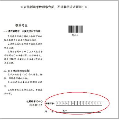 关于2012年12月全国大学英语四、六级考试的重要提示