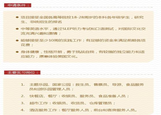 为给广大同学提供体验美国文化、积累海外实习经验,best365官网与美国国际教育交流协会联合推出暑期赴美带薪实习/社会实践项目。现将关于报名参加best365官网2015年大学生暑期赴美带薪实习项目相关事宜通知如下: