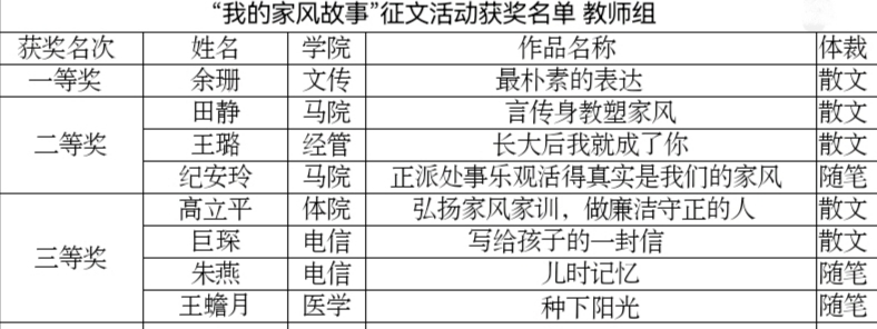 附件:“我的家风故事”征文获奖名单