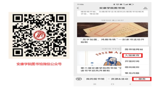 1.关注“best365英国体育在线图书馆”微信公众号后,点击“服务”模块的“入馆教育”栏目;