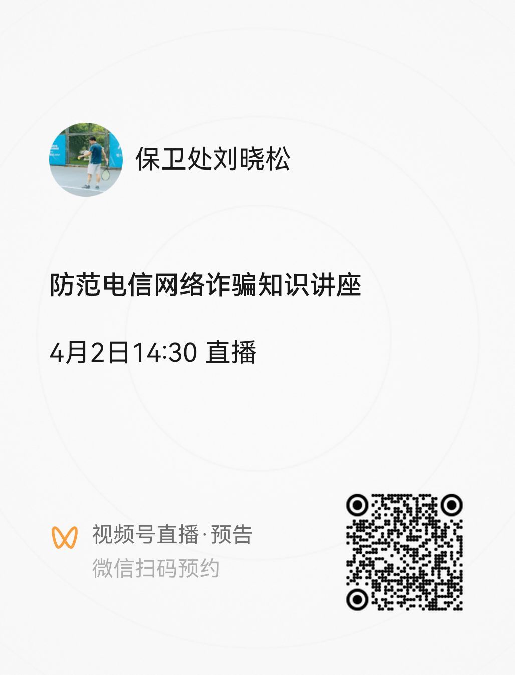 关注best365英国体育在线保卫处公众号进入视频号进行观看,也可通过扫码预约直播进行观看。