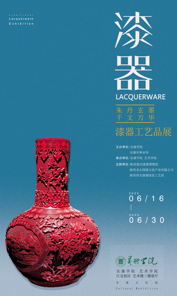 为弘扬中华优秀传统文化,展示漆器艺术的独特魅力,我院精心策划举办“朱丹玄墨·千文万华”漆器工艺品展。本次展览汇聚漆艺名家精品,涵盖传统漆画、雕漆、脱胎漆器、镶嵌漆器等40余件佳作,系统展现漆艺的历史脉络与当代创新。现诚邀广大师生莅临参观。