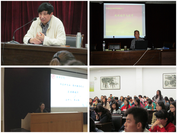 从活动后学生的反馈看,这次“作家讲文体”系列教改活动的实施,对他们深入理解诗歌、小说、剧本三种体裁的特点确实起到了很好的效果,他们热切地期盼能多举办一些这类讲座活动。我们认为,以专家讲座的方式进行案例式、情境化教学,用以弥补课堂知识教学的单一和单向性,确实是一种值得推广的课堂教学新模式,中文系将会在这一方面继续探索、总结。