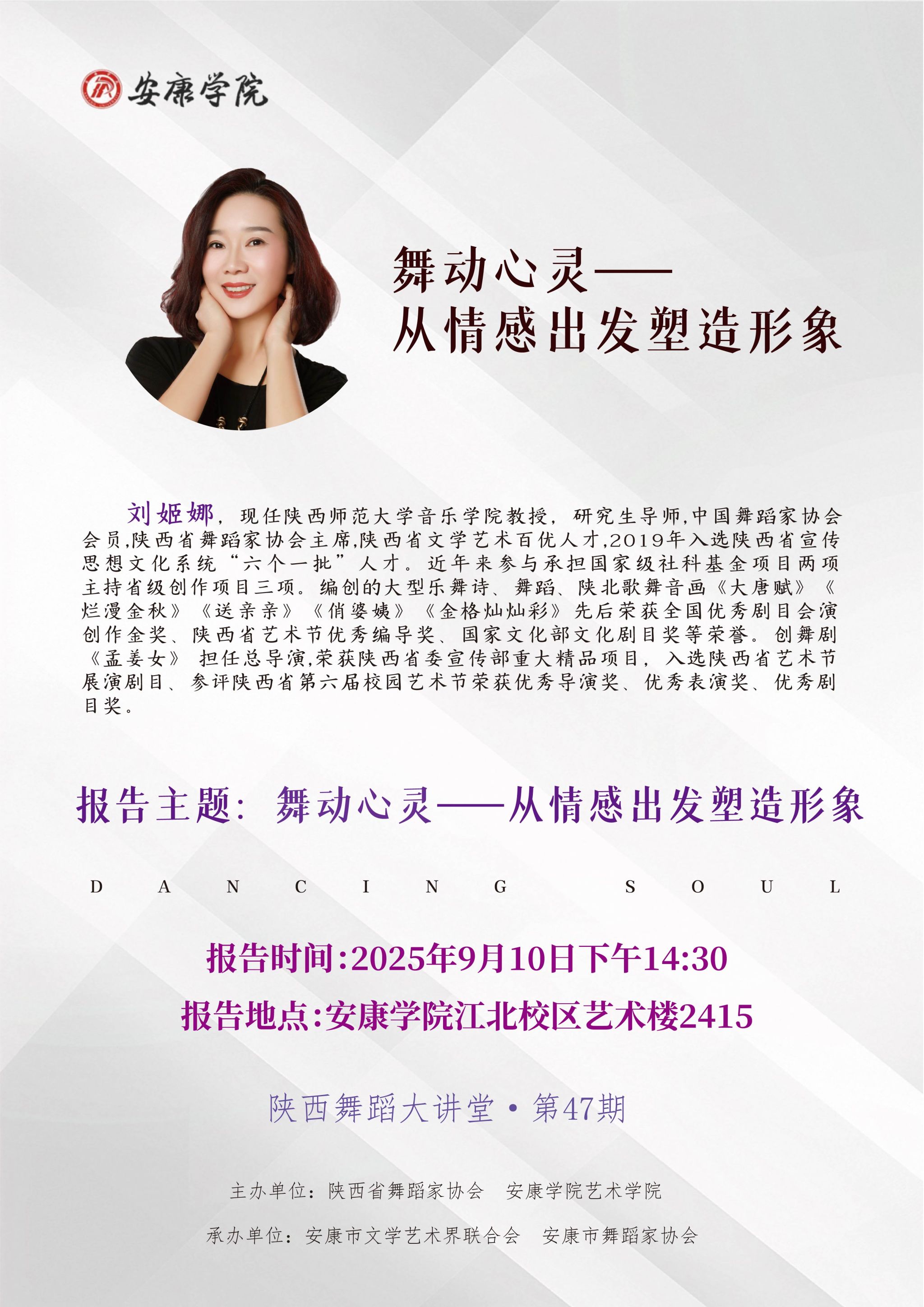 刘姬娜,现任陕西师范大学音乐学院教授,研究生导师。中国舞蹈家协会会员,陕西省舞蹈家协会副主席,陕西省文学艺术百优人才,2019年入选陕西省宣传思想文化系统“六个一批”人才。近年来参与承担国家级社科基金项目两项,主持省级创作项目三项。编创的大型乐舞诗、舞蹈、陕北歌舞音画《大唐赋》《烂漫金秋》《送亲亲》《俏婆姨》《金格灿灿彩》先后荣获全国优秀剧目会演创作金奖、陕西省艺术节优秀编导奖、国家文化部文化剧目奖等荣誉。创舞剧《孟姜女》担任总导演,荣获陕西省委宣传部重大精品项目,入选陕西省艺术节展演剧目、参评陕西省第六届校园艺术节荣获优秀导演奖、优秀表演奖、优秀剧目奖。